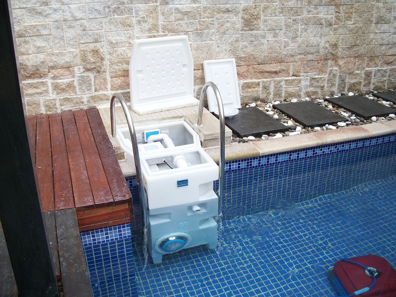 二、壁挂式设备是集过滤循环于一体的挂在泳池壁上的设备。随无需建造机房、铺设管道,若室外池,长期受外界环境的影响,容易缩短设备使用寿命,且该设备是把那自动操作、人工反冲洗,需要定期更换滤料,比较麻烦;处理水质没有重力式设备精度高。